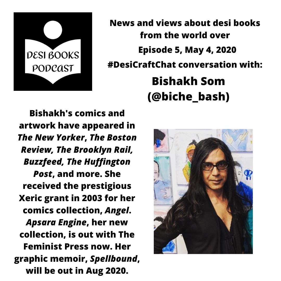 In today’s episode, in addition to the usual roundup of new notable desi books, short stories, poems, essays, interviews, awards, and more, we have the graphic storyteller, Bishakh Som, joining us for a new monthly segment called #DesiCraftChat. This segment will feature storytellers talking about their craft, how they approach it, their process, their works, and more. So Bishakh will be sharing details about her latest collection, Apsara Engine, and how she approaches the graphic storytelling form. So settle in for a listen. The full transcript with all the links will be up within 24 hours as well.
