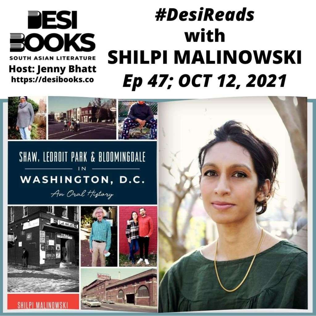 You’ve been listening to episode 47 of Desi Books—news and views about desi literature from the world over. I’m your host, Jenny Bhatt. Thank you for tuning in. Today’s #DesiReads segment was with Shilpi Malinowski reading from her debut book, Shaw, Ledroit Park and Bloomingdale in Washington, DC: An Oral History (Amazon link.)