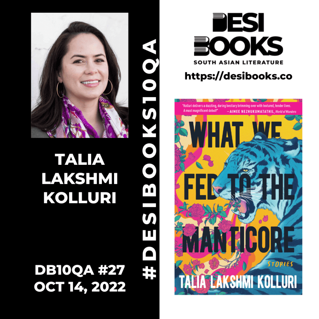 Talia Lakshmi Kolluri’s story collection, What We Fed to the Manticore, explores themes of environmentalism, conservation, identity, belonging, loss, and family through animal perspectives. #DesiBooks10QA @DesiBooks