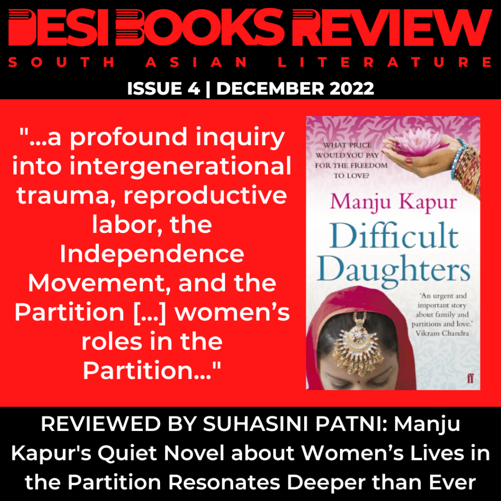 Difficult Daughters is a profound inquiry into intergenerational trauma, reproductive labor, the Independence Movement, and the Partition. While presenting the overwhelming and far-reaching outcomes of independence and emancipation, it also exposes the deep-rooted marginalization of women who assert their rights. As one of the few novels about women’s roles in and lives during the Partition, the novel recollects a history of liberation through a Virmati who eventually finds empowerment, however lonely, in ways that a majority of women in India can barely dream of even today.